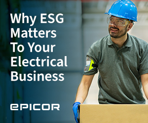 | | | | | Advertisement | | Building a solid Environmental, Social, and Governance (ESG) strategy is vital in today’s electrical industry. Join our webinar, with Epicor Chief Legal Officer JT Taylor and Epicor Senior Director of Governance Mark Nyquist, to learn how ESG can help your business reduce costs and manage risk. |