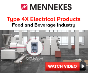 | | Sponsored | Your electrical and power infrastructure must be able to withstand washdown and other corrosive agents in demanding food and beverage processing facilities. From production to packaging operations, watch our video to see the MENNEKES products that excel under these conditions. |